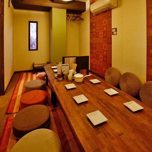 最大12名様まで♪ゆったり座れる座敷の個室をつなげると、12名様までご利用いただけます。ひとつのテーブルを囲んで、皆様でお顔を見合わせながら過ごせるリラックス空間。ゆったりとおくつろぎください。